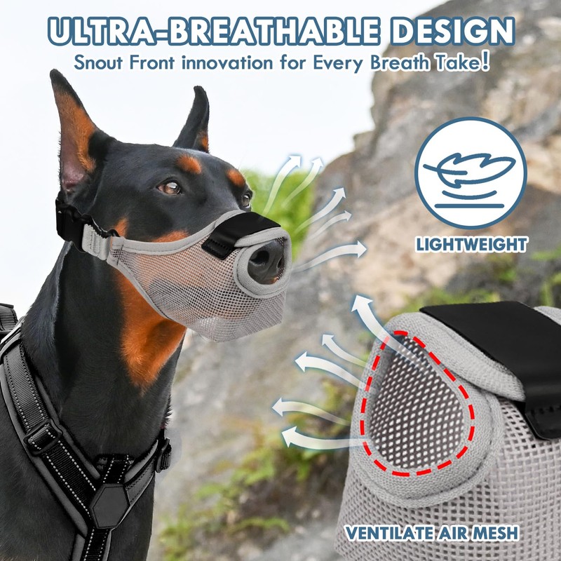 GREMCADA Dog Muzzle - Soft Air Mesh Pet Muzzle for Large Medium Small Dogs - Front Opening Design, Breathable, Adjustable, & Prevents Biting & Scavenging, Dog Mouth Cover Allows Drinking (Grey, L)