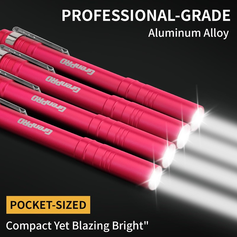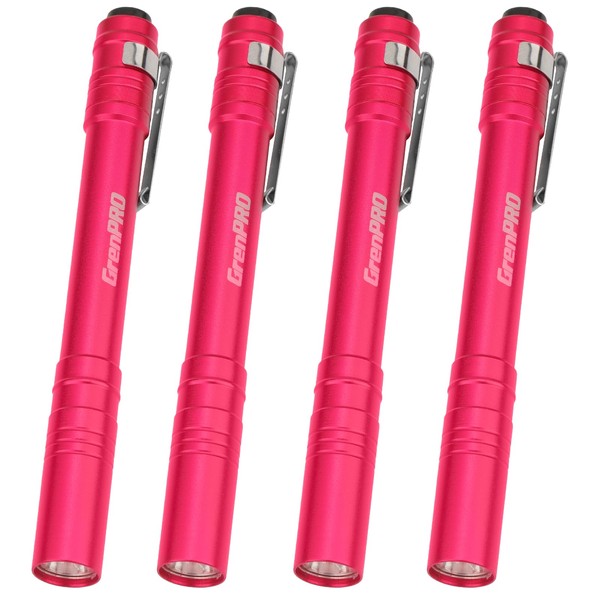 GRENPRO Pen Lights for Nurses LED Penlight, Aluminum Pocket Flashlight, Small Pocket Flashlight 2AAA Batteries Include, 4 Pack Emergency Handheld Penlight Pink Red