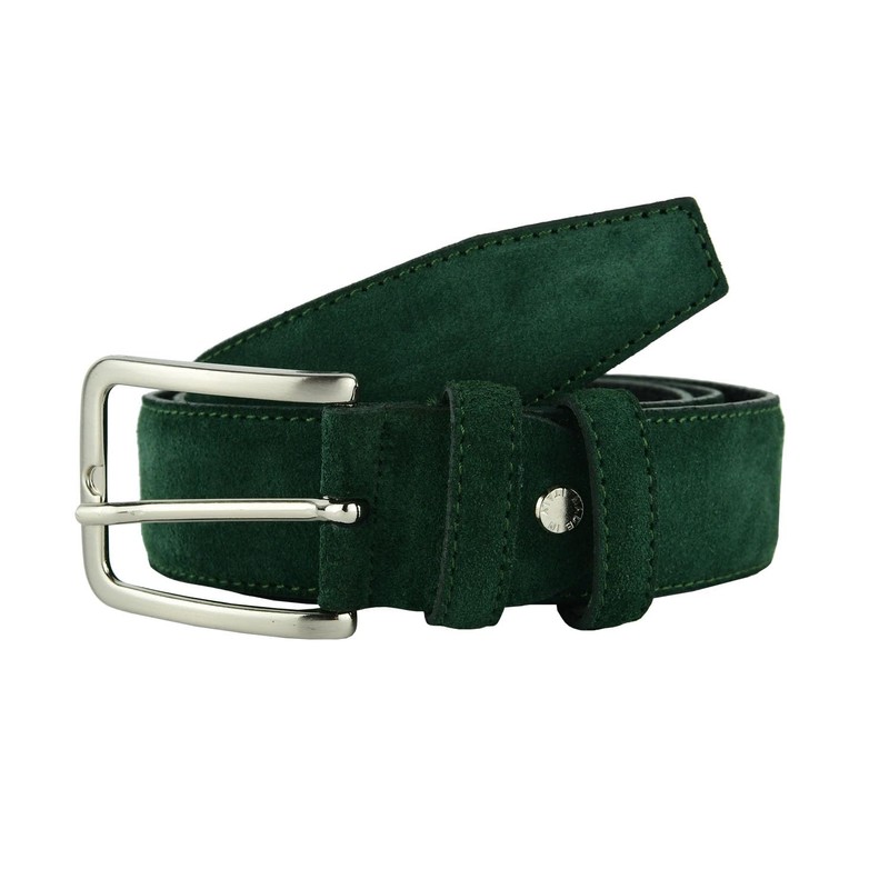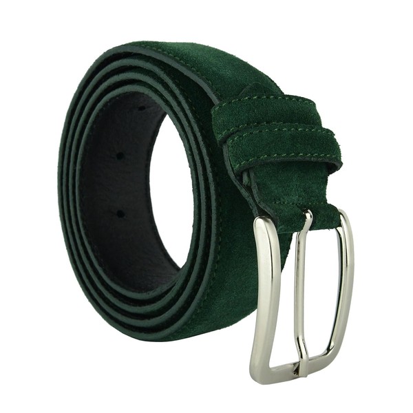 GRESEL Genuine Suede Belt for Men and Women, Genuine Leather, Made in Italy, Adjustable, 3.5 cm Wide, Green