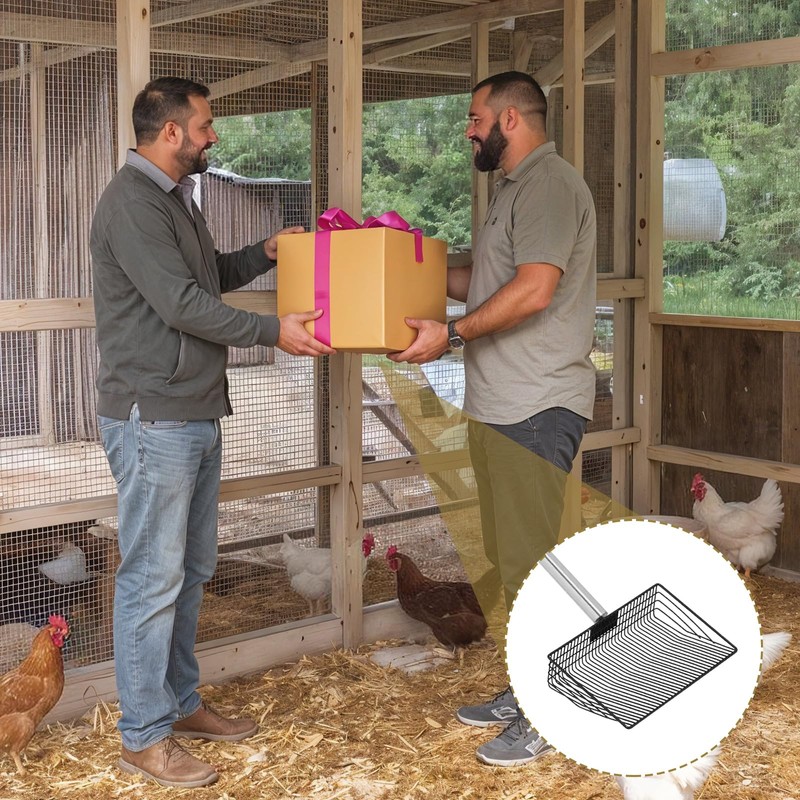 - 【Efficient Waste Collection】The large shovel head, measuring 9.84x6.18x2.28 inches, is designed with optimal mesh sizes to filter out chicken poop while leaving smaller debris behind. This efficient design reduces cleaning time and effort, making it a practical choice for poultry care.