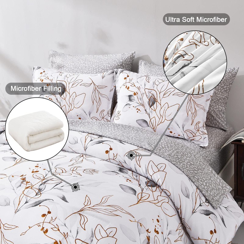 - [ULTRA SOFT MICROFIBER MATERIAL]:This botanical comforter set used the whole piece of polyester as the filling of the comforter which makes the comforter more soft and warm.It is more comfortable and breathable to use, skin-friendly, smooth to the touch, and fade-resistant. High density stitches make sure to avoid the comforter to shifting and clumping.
