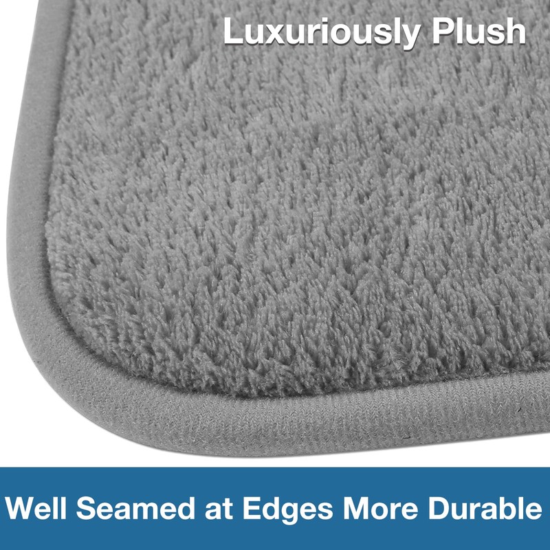 • Cozy Comfort: Made of super soft and plush microfiber and memory foam, this bath mat feels luxurious underfoot and helps absorb water to keep floors dry.