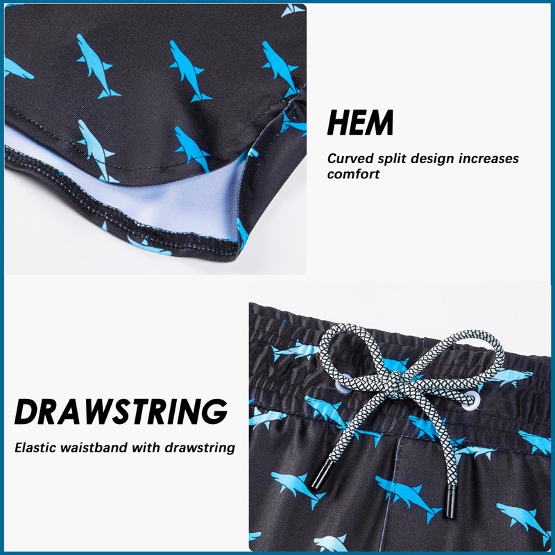 • Swim Trunks with Compression Liner: This 2 in 1 mens swimming trunks with a built-in compression boxer brief, which provides support for your thighs and helps prevent from sticking to your skin when it’s soaked. It’s stretchy, elastic, breathable and much safer than one layer shorts.