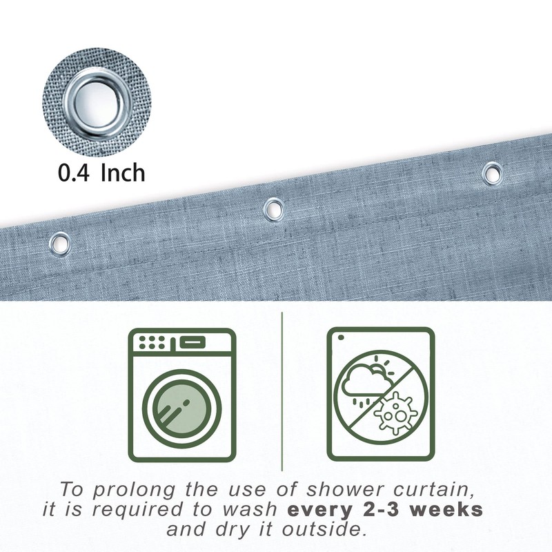 - Privacy & Waterproof:Not see through/semi sheer and privacy assured fabric perfectly making the shower curtain an alternative to frosted clear shower curtain.Lightweight and airy only from fabric.Processed with water repellent methods,no liner needed.