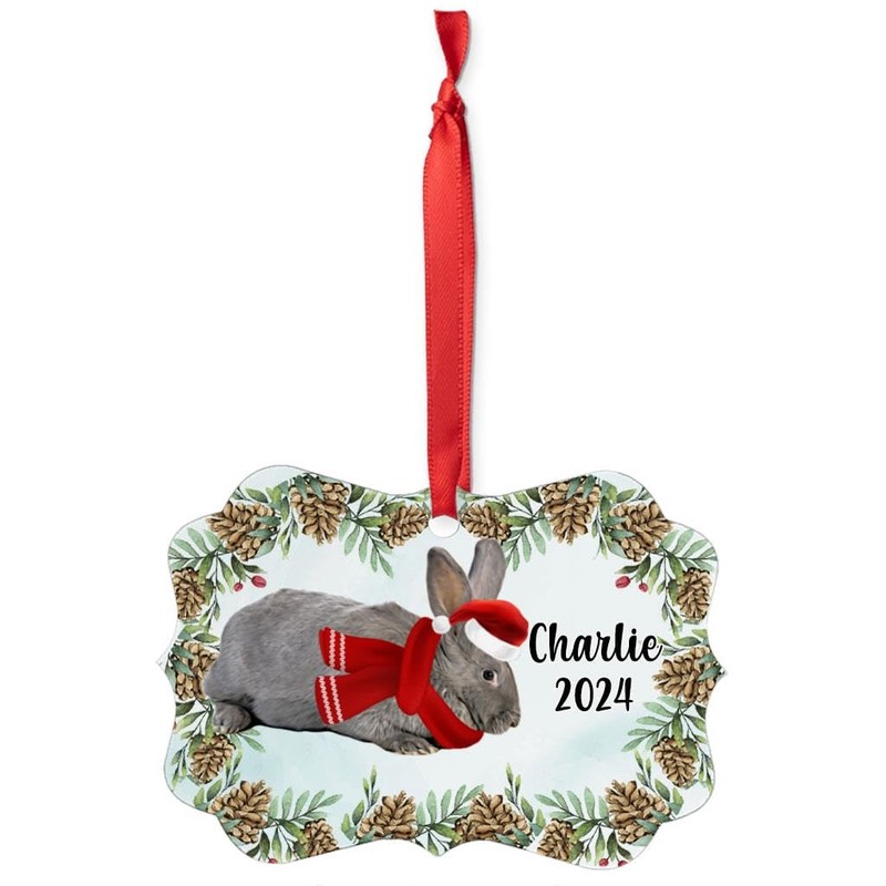 Grey Flemish Giant Rabbit Christmas Ornament 2024 - Personalized Aluminum Pinecone with Red Scarf and Santa Hat - Gifts for Rabbit Lovers