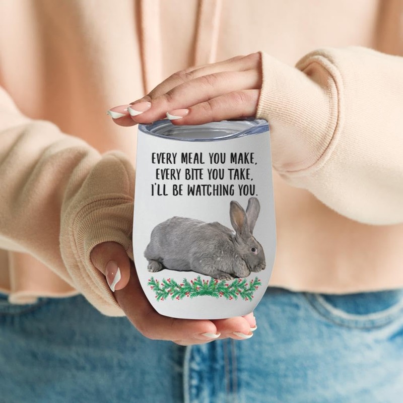 Grey Flemish Giant Rabbit Wine Tumbler 12oz - Stainless Steel With Lid - Funny Saying Every Meal You Make Every Bite You Take - Gifts for Rabbit Lovers