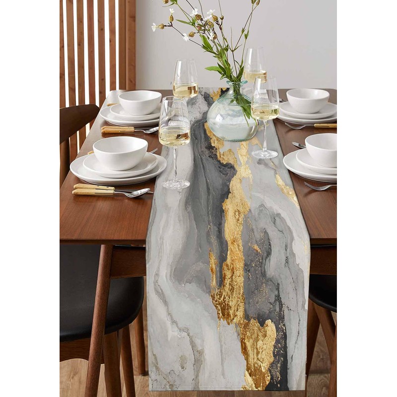 Grey Ombre Marble Table Runners 72 Inches Long, Golden Gray Marble Crack Table Runner Dresser Scarf, Abstract Art Kitchen Dining Tables Decoration for Holiday Party Wedding Home Decor, 13"x72"
