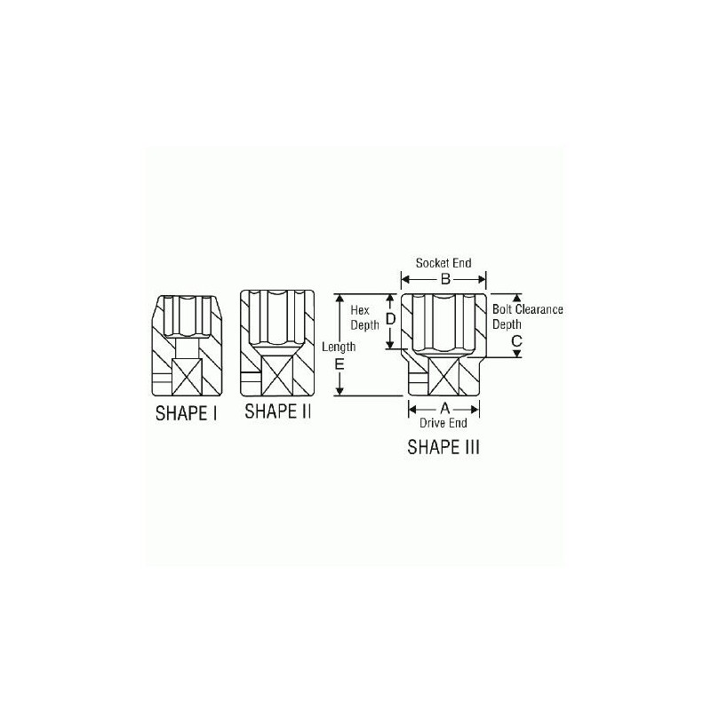 - Type: High Torque, 6-Point, Standard Length, SAE Fractional, Hex, Shape II