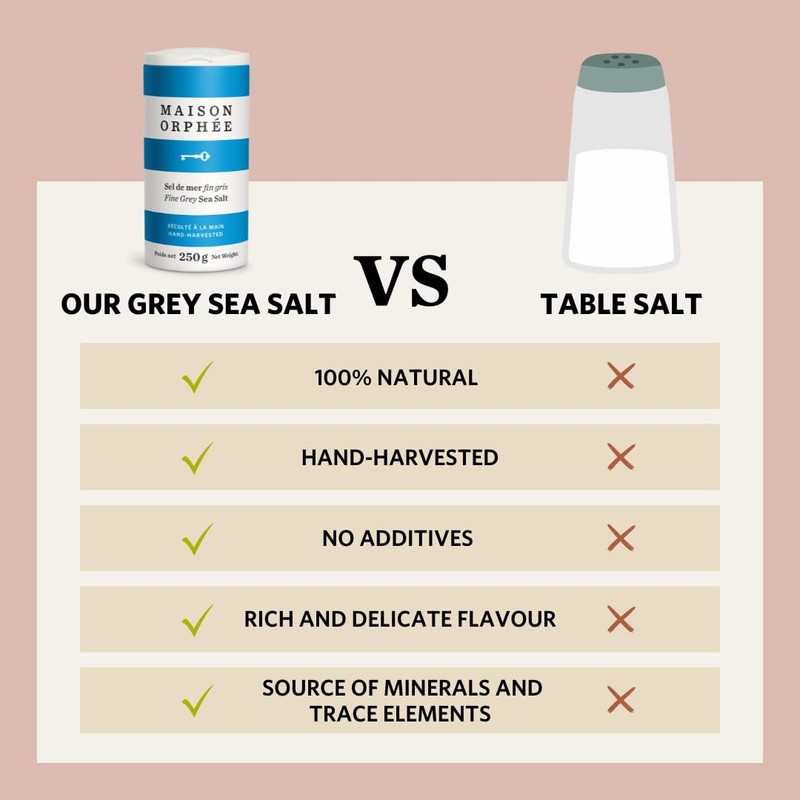 - ALL NATURAL FINE SEA SALT: Maison Orphée Sea Salt is hand harvested in Noirmoutier Island's tidal marshes. This traditional method preserves the salt's purity, keeping it entirely natural offering an authentic, additive-free sel de mer experience.
