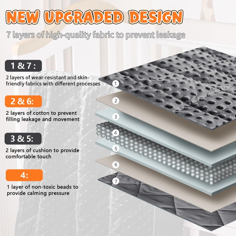 - Cozy Microfiber Heavy Blanket: The material of minky blanket is microfiber polyester, which is stronger, more elastic & comfortable. The heavy blanket contains environmentally friendly glass beads, which are breathable & tasteless. With a dense stitching pattern interweaving into a 7-layer structure, the beads stay intently inside the compartments without scattering, while allowing for increased breathability through the blanket, great for the hot summer nights.