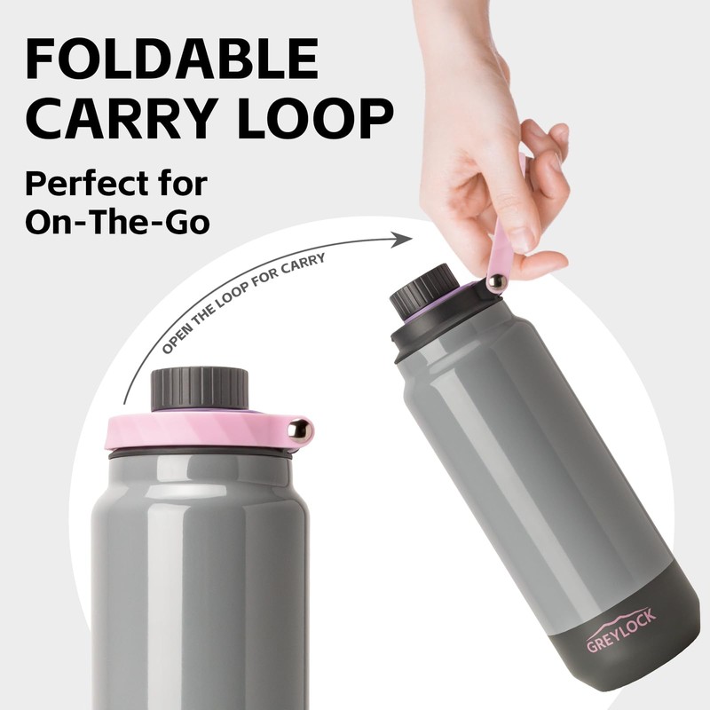 GREYLOCK 32 oz Insulated Water Bottle with Straw Lid, Leakproof Reusable Stainless Steel Vacuum Flask, 24hr Cold & Hot, Carry Handle & Silicone Spout, BPA-Free for Gym, Hiking, Travel, Grey