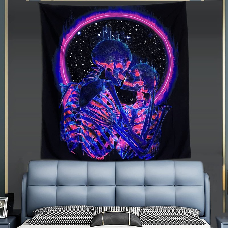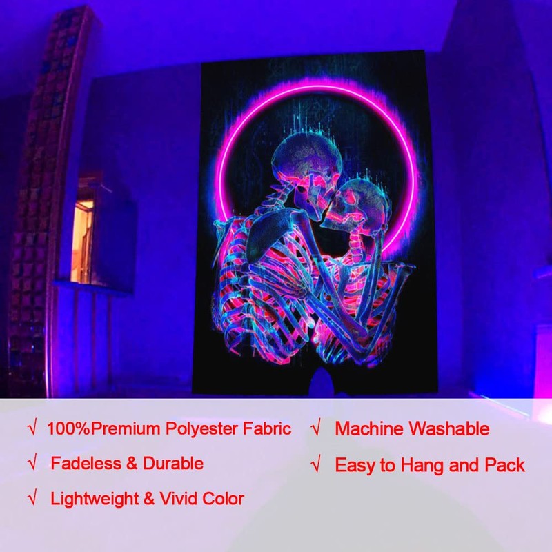 - Unique Pattern:This Blacklight Skull Tapestry Trippy adopts HD printing technology. Vivid and clear pattern. Colorful Hippie Indian Tapestry will be a good decor piece for your room.