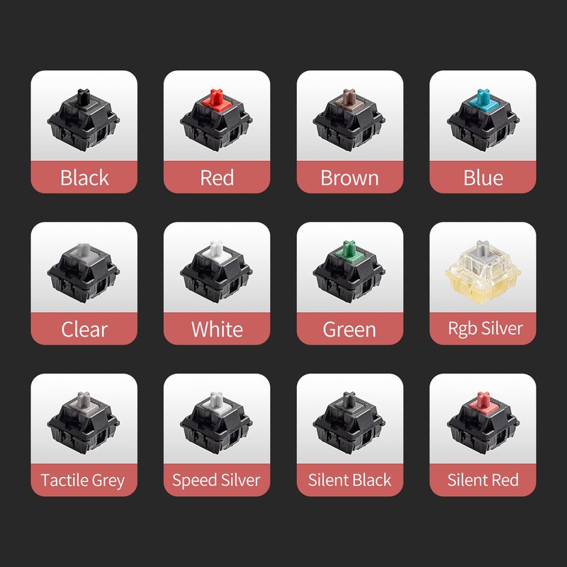 • Printed PBT Keycaps: Mounted on a crystal transparent acrylic base, equipped with 12 PBT keycaps with switch color, this key switch tester lets you easily know which switch is which.