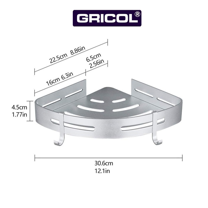 Gricol Shower Shelf No Drilling Space Aluminium with 2 Hooks Pack of 2