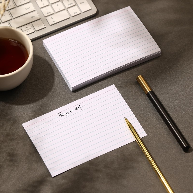 • EFFICIENT ORGANIZATION: These notecards are ideal for daily to dos,quick reminders, master lists,tasks,projects,groceries, goals,chores,general office supplies for desk organization. Or flash cards for studying for school, work.