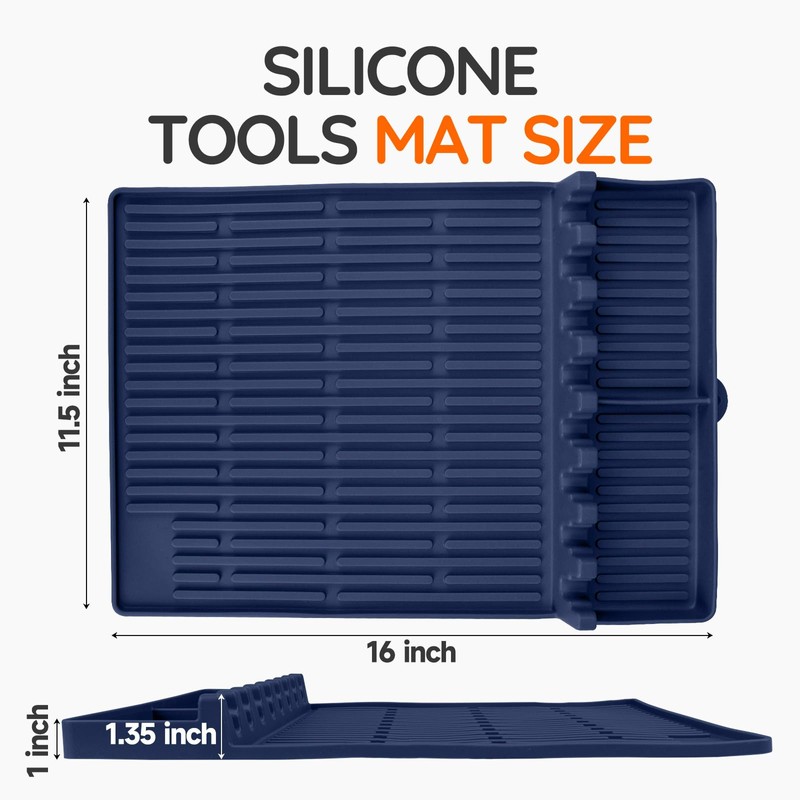 - 【16x11.5 in Grill Side Shelf Mat】Enhance your cooking experience with our sturdy 16x11.5" silicone spatula mat. Designed for durability and versatility, it effortlessly converts your Blackstone side shelf into an organized space. Use it as a grill BBQ caddy, seasoning jar holder, or ladle spoon organizer, ensuring your kitchen and countertop remain spotless