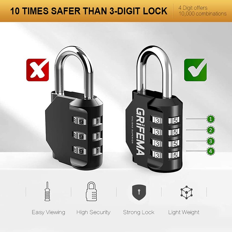 - [HIGH SECURITY]: 4-digit combination lock with 10,000 combinations, more difficult to open than a 3-digit combination lock.