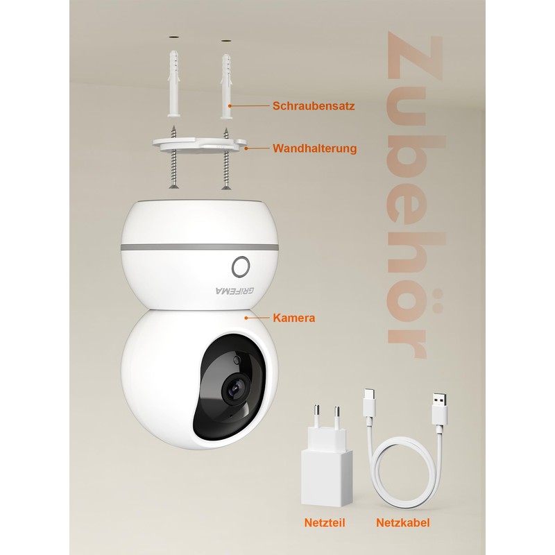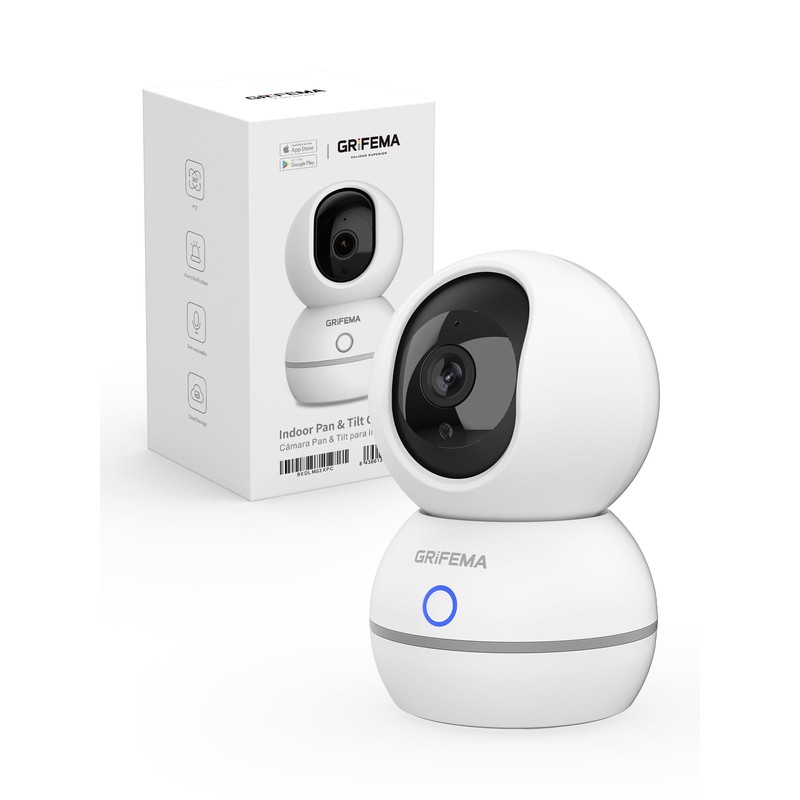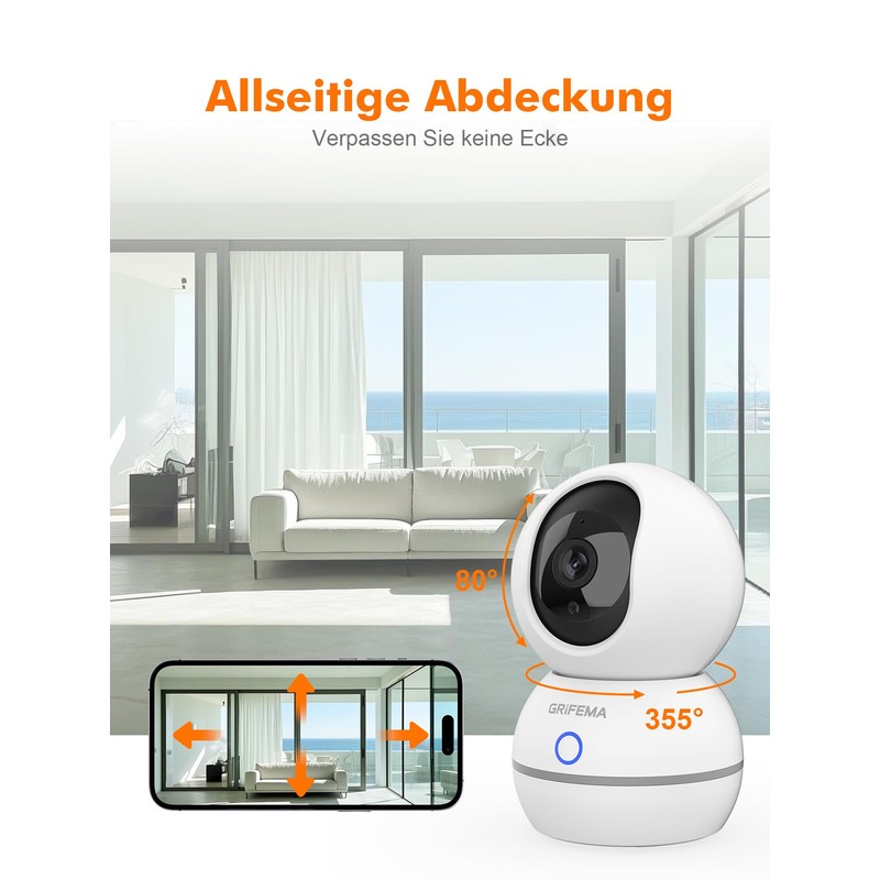 GRIFEMA WLAN Indoor Surveillance Camera 1080P with Night Vision 10 m, 360° Baby/Pet Camera with Anomalous Noise Detection (Baby Crying/Glass Break), Two-Way Audio, SD/Cloud & Mechanical Privacy Screen