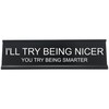 Griffco Supply I'll Try Being Nicer, You Try Being Smarter - Humorous Desk Sign, Office Decor - Black w/ White, 2"x8", Aluminum