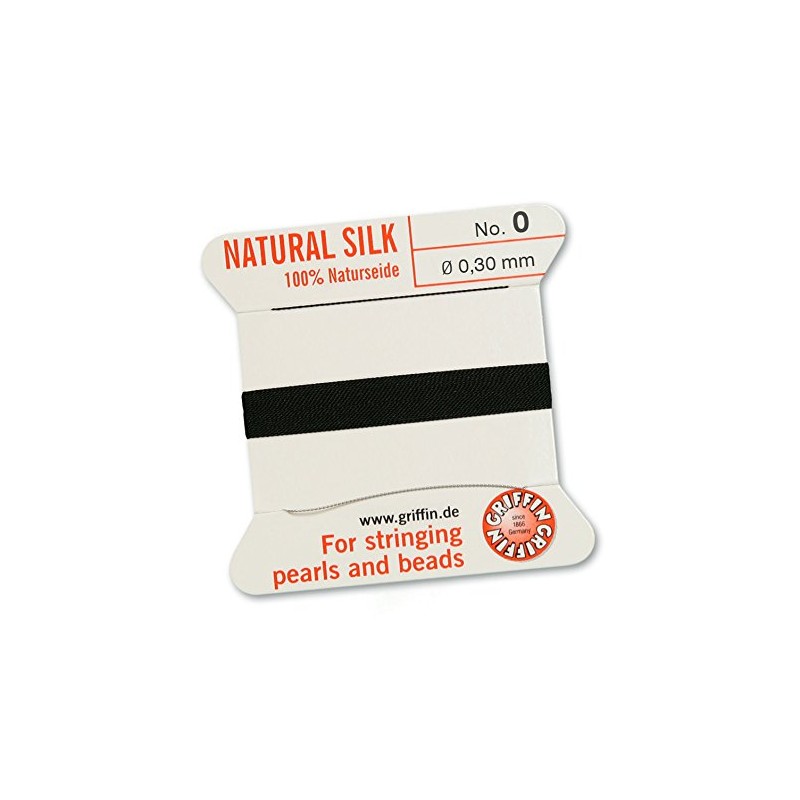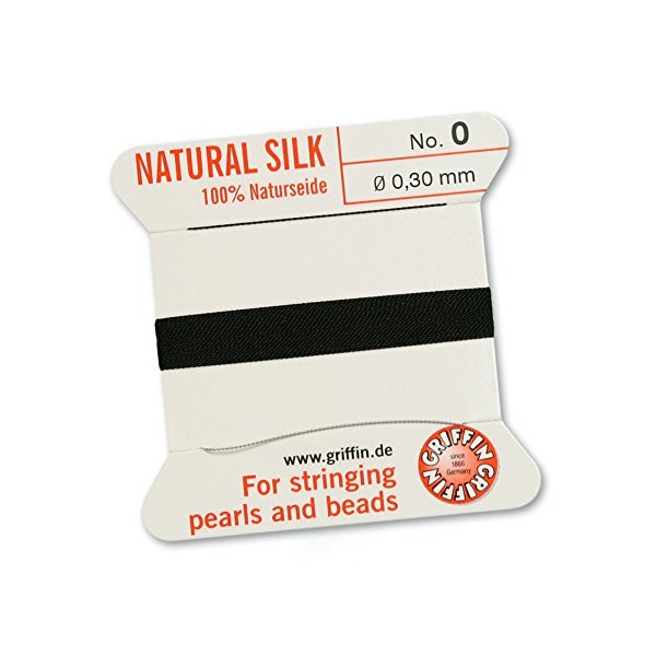 GRIFFIN 100% Natural Silk, Black, 2 m with a Needle, Size 0.3 mm