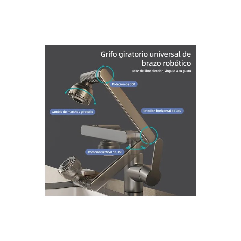 ¡Renueva tu baño con este grifo inteligente! Con rotación 360° + 2 modos de agua, diseño anti-salpicaduras y acabado gris plomizo resistente, combina estilo y practicidad en un solo producto.