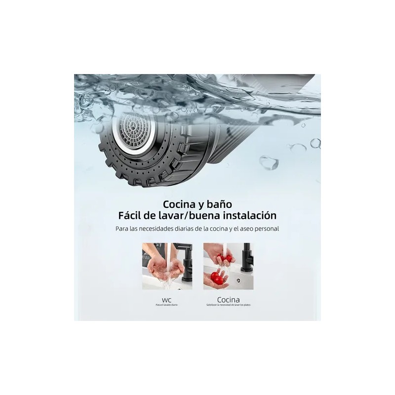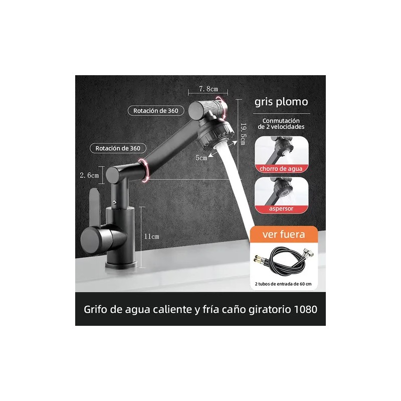 ¡Renueva tu baño con este grifo inteligente! Con rotación 360° + 2 modos de agua, diseño anti-salpicaduras y acabado gris plomizo resistente, combina estilo y practicidad en un solo producto.