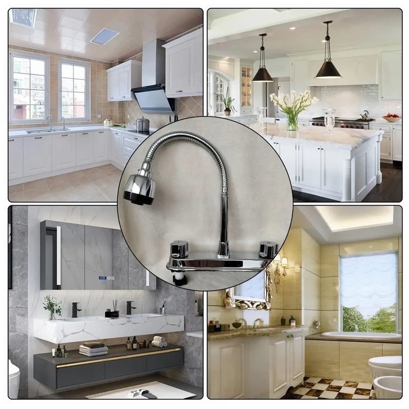 - 【Flexible y Giratorio】: El caño giratorio de 360 grados proporciona más espacio en el fregadero para sus tareas de lavado; diseño de doble asa para un control preciso del caudal y la temperatura del agua. Es ideal para fregaderos grandes o dobles.