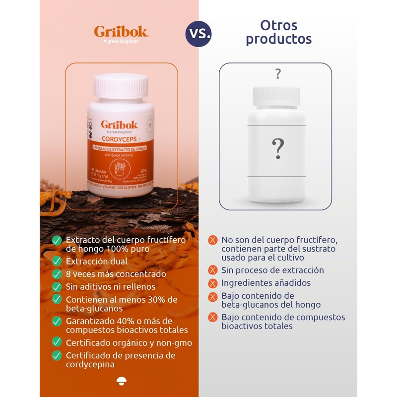 Griibok | Hongo Cordyceps | 90 cápusulas de 330 mg c/u | Orgánico Vegano Sin Gluten
