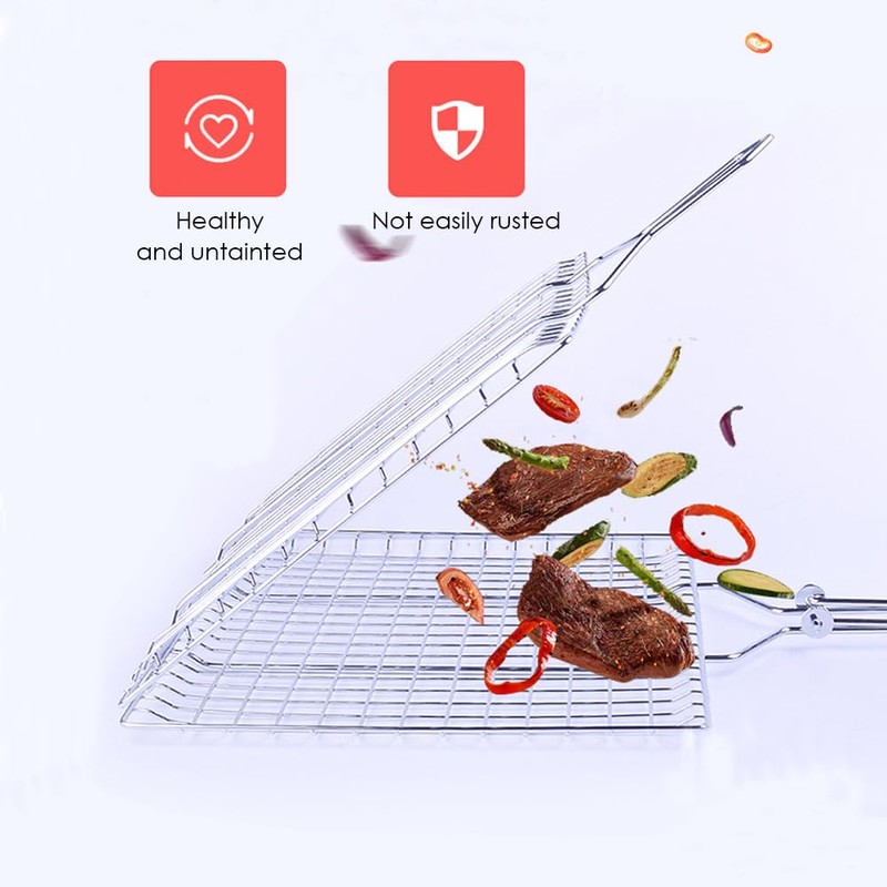 - The lockable grill basket keeps the grilled food in place, it can flip the grill net safely and easily without wasting food. Ideal for grilling fish, meat, burgers, steaks, seafood, vegetables, crabs and other delicate foods