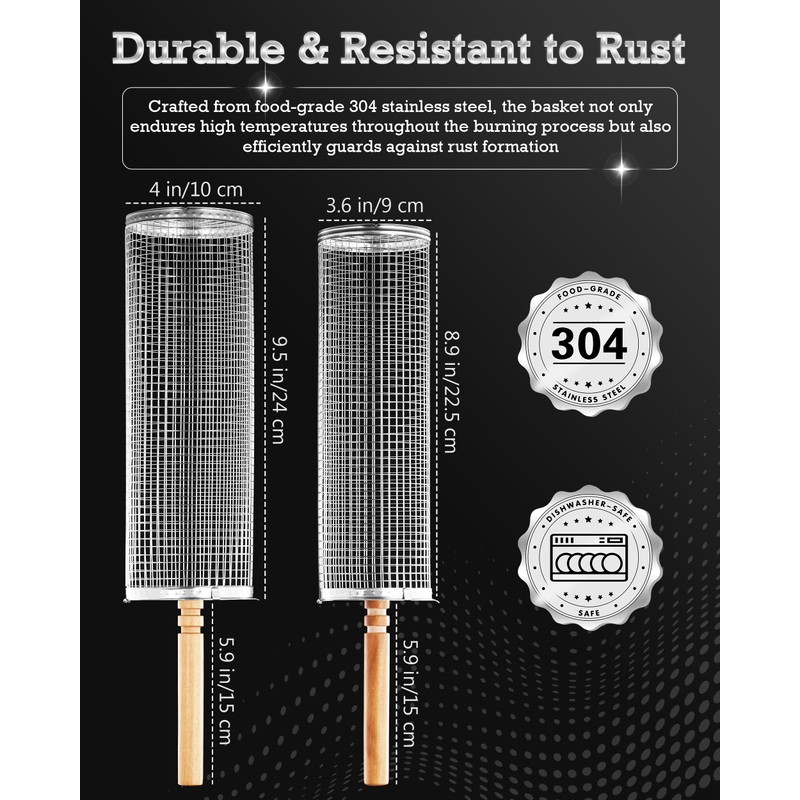 - Crafted from Food-Grade 304 Stainless Steel: Our grill baskets, excluding their wooden handles, are constructed entirely from high-quality food-grade 304 stainless steel. The wire mesh gauge and the thickness of the front and back cover plates exceed industry standards, and each component is finished with a mirror polish for added durability and ease of cleaning. Our commitment to excellence ensures that our products are robust, simple to maintain, and above all, prioritize the health and safety of you, your friends, and your family.