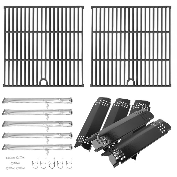 Grill Grates Replacement for Nexgrill 5 Burner 720-1046 720-1046A, Cooking Grate Replacement for Nexgrill Replacement Parts 5 Burner, Cooking Grate, Heat Shield and Burner Kit for Nexgrill 720-1046