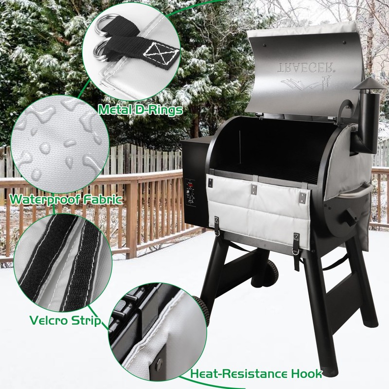 - Unidanho pellet smoker grill insulated blanket for traeger securely attaches to your grill with the built-in heat-resistant magnets for long-term use. Just drape it over and let the magnets click into place, attach the buckle on the strap, and press tightly. The grill thermal blanket is foldable, easy to store also space-saving.