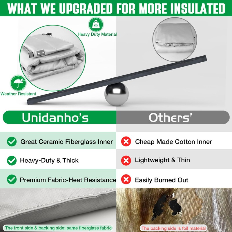 - 【Ceramic Fiberglass Smoker Blanket】 Unidanho pellet smoker grill insulation blanket is made of premium ceramic fiberglass inner and fiberglass fabric outer(both front side and backing side). Triple insulation improves the grill experience more than the poor-quality blanket.