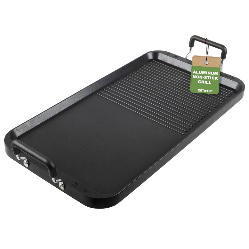 Grill Pans for Stove Tops, 20"x10" Non-Flip Grill & Griddle Pan- Dual Zone, PFOA-Free Aluminum, Induction/Gas/Camping