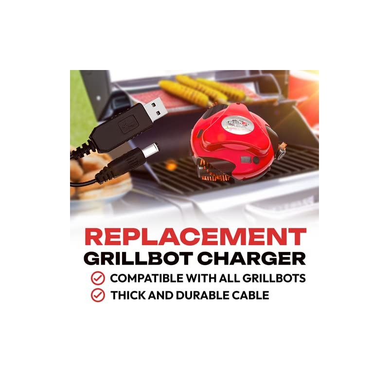 - GRILLBOT ROBOTIC GRILL CLEANER CHARGER: After tons of grilling, you'll get to replace your USB charger. But to ensure a perfect fit for your favorite Grillbot Grill Cleaning Robot, we've designed a replacement charger with a lot of power and features. Continue to have that powerful tool for all hard-to-reach stubborn residue or debris with our replacement USB charger.