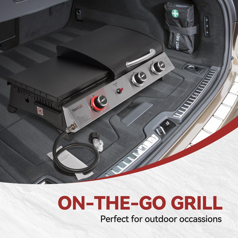 - Cooking Area: With a combined cooking area of 200 sq. in. for porcelain-enameled griddle and 205 sq. in. for grilling, this portable propane grill offers abundant space to cater to gatherings of varying size