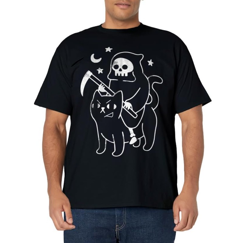 - This awesome kitty grim reaper riding a cat T-Shirt is perfect gift for kitten owner men, women, ladies, girls, boys, kids, or youth who likes scary, creepy, and spooky designs! Great present for pet lovers for christmas, birthday, or halloween