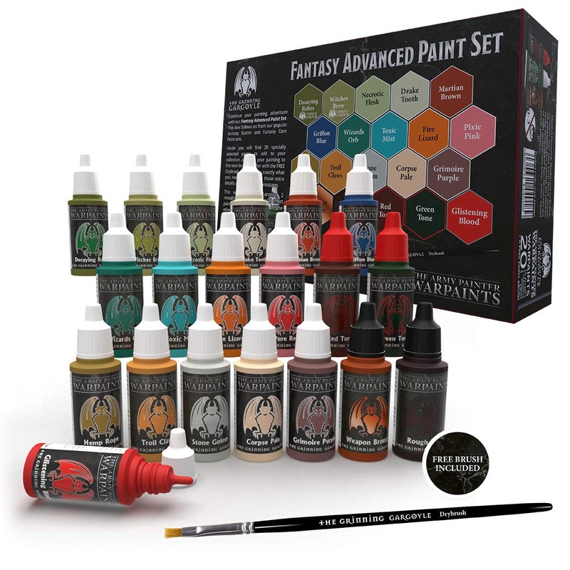 Grinning Gargoyle Mini Paint Set - Fantasy Miniature Paint Set – Army Paint Model Paint for Tabletop Figures - 20x Warpaints and a Brush Miniature Painting Kit - Model Paint Set (Advanced)