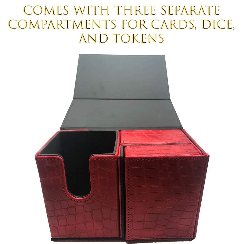 - 🟥 STAY ORGANIZED WITH THREE COMPARTMENTS - This card storage box comes with three separate compartments, including one for dice and two for 120 and 72 single-sleeved cards. Perfect for RPG, TCG, and CCG trading cards.
