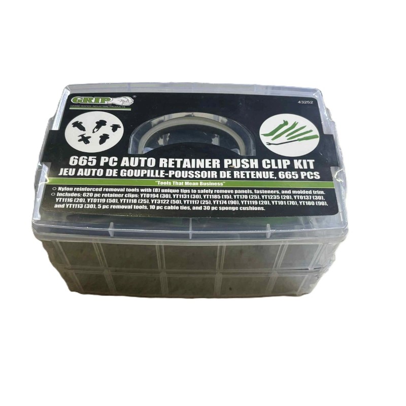 GRIP 665pc Auto Retainer Push Clip Kit Cable Ties Removal Tools 43252