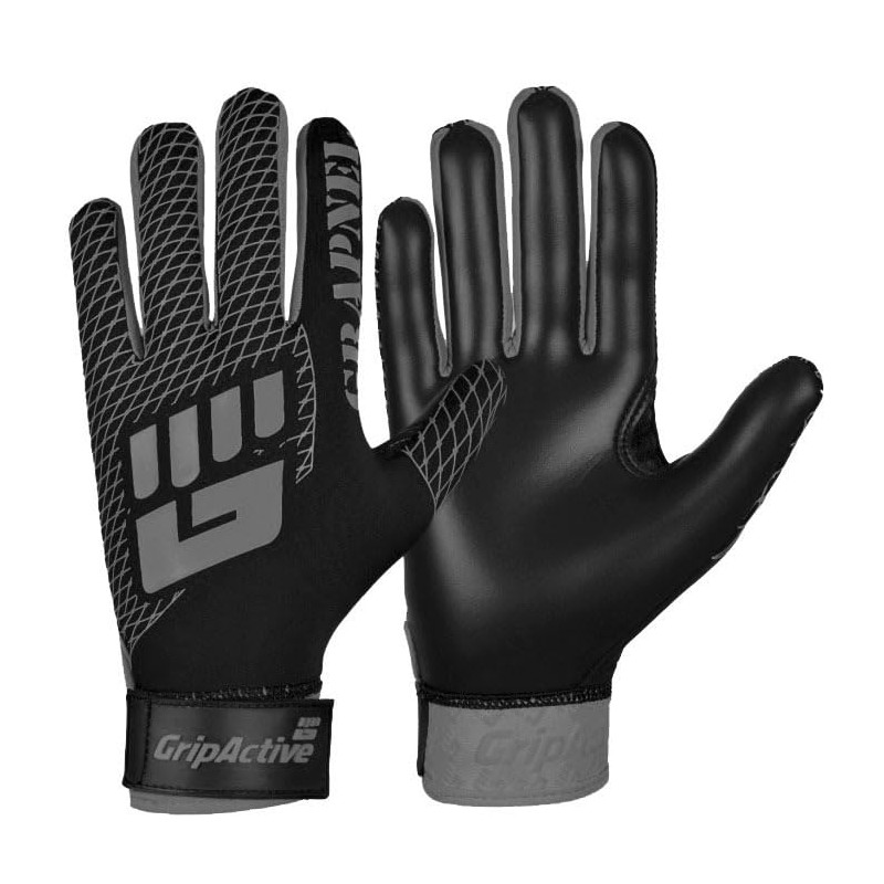 Grip Active GAA Gloves - Premium Gaelic Football Gloves – Made with 2.5mm Latex for Best Grip-Great Ball Control - Special Embossed Neoprene Cuff for Comfort (Grey and Black, 5-Under 10 Years)