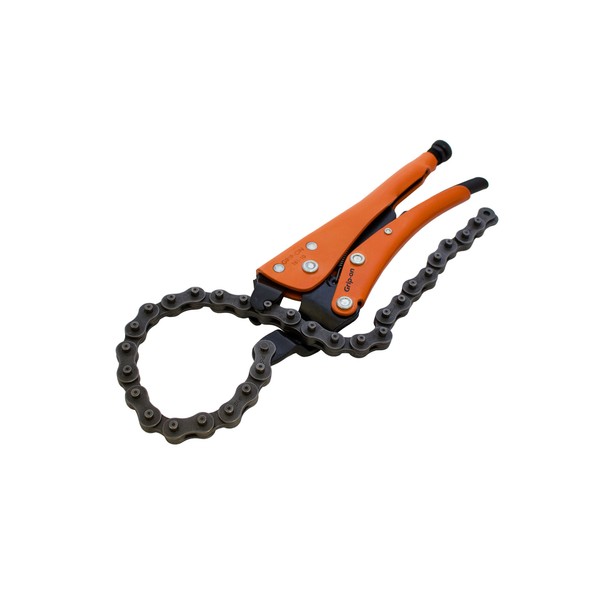 The Grip-On Chain Clamp Locking Pliers wraps around and holds irregularly- shaped objects quickly and easily, even in difficult places.