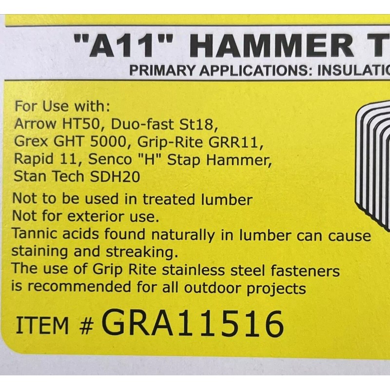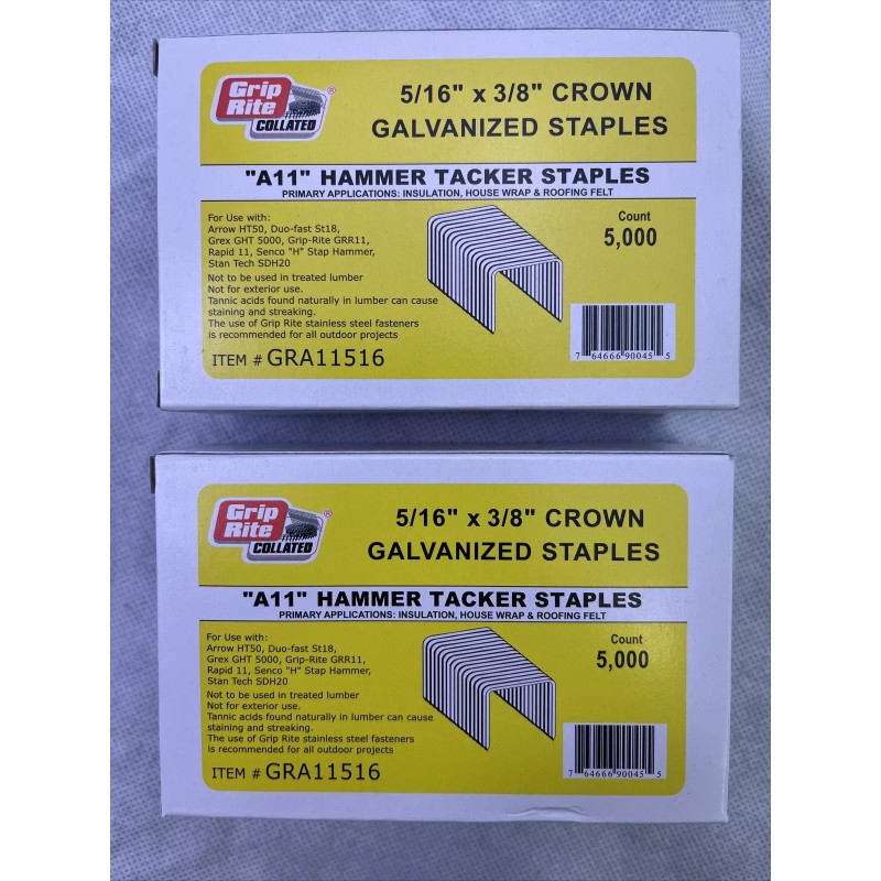 Grip-Rite 2 Grip-Rite A11 Hammer Tacker Staples GRA11516 5/16 x 3X8 Crown Galv 5000ct