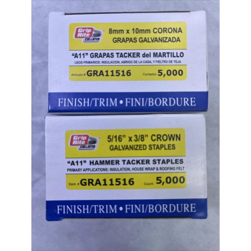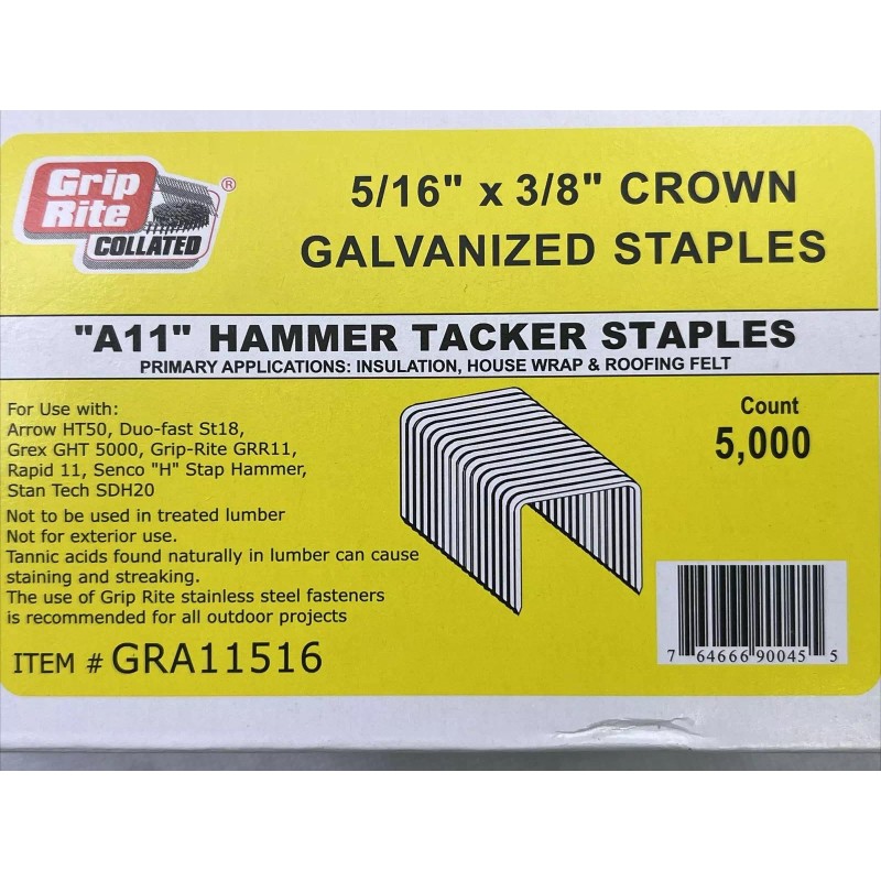 Grip-Rite A11 Hammer Tacker Staples GRA11516  5/16 x 3X8 Crown Galvanized 5000ct