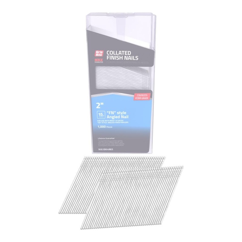 Grip-Rite PrimeGuard Max MAXB64883, FN Finish Nail 15GA, 2", 304 Stainless Steel, 1000 Nails, Clamshell Packaged