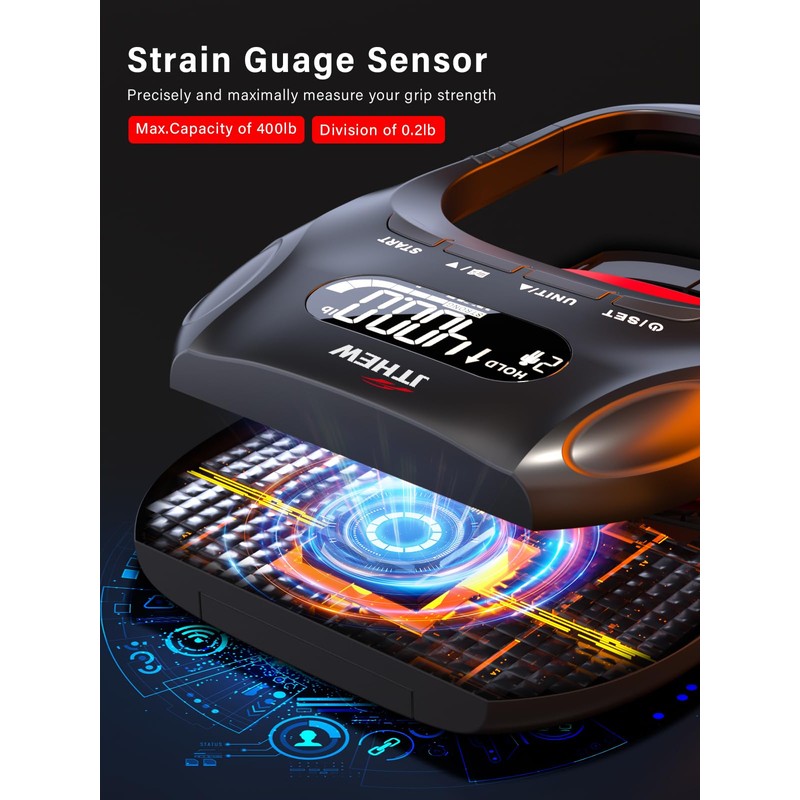 Grip Strength Tester Trainer - Electronic Hand Dynamometer of 400lbs/180kg & Grip strengthener with Adjustable Resistance for Sport