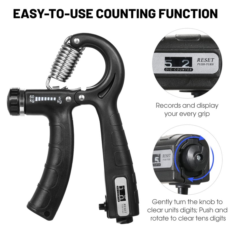 - Adjustable Hand Grip - Smart counter records your exercise numbers to track your training progress, no battery required.
