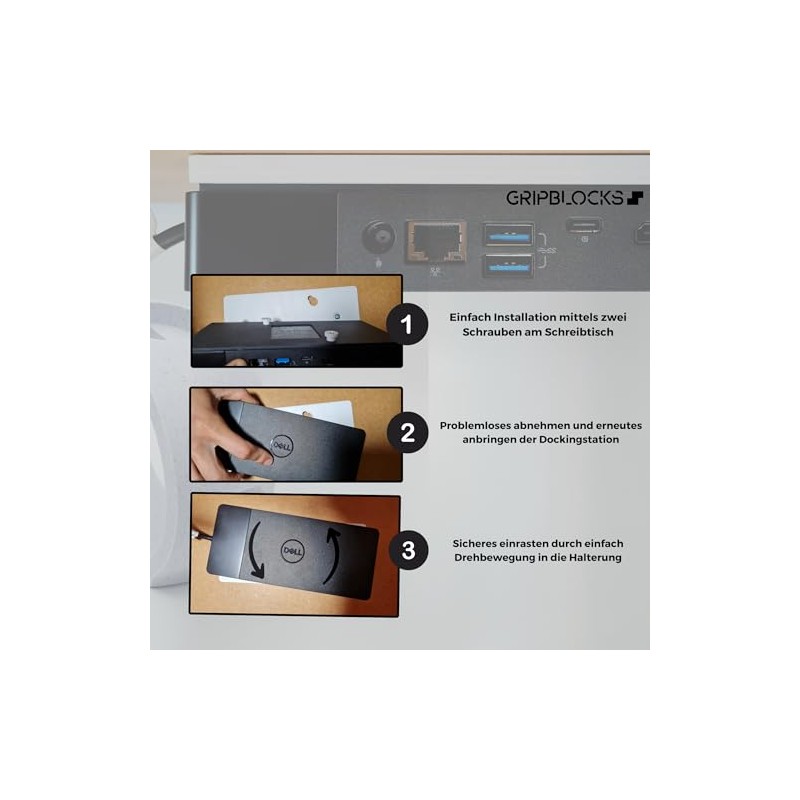 GRIPBLOCKS DOCKING STATION BRACKET FOR DELL WD19, WD19S, WD19TB, WD19TBS, WD19DC, WD19DCS, WD22TB4, Space Saving Under Desk (Black)