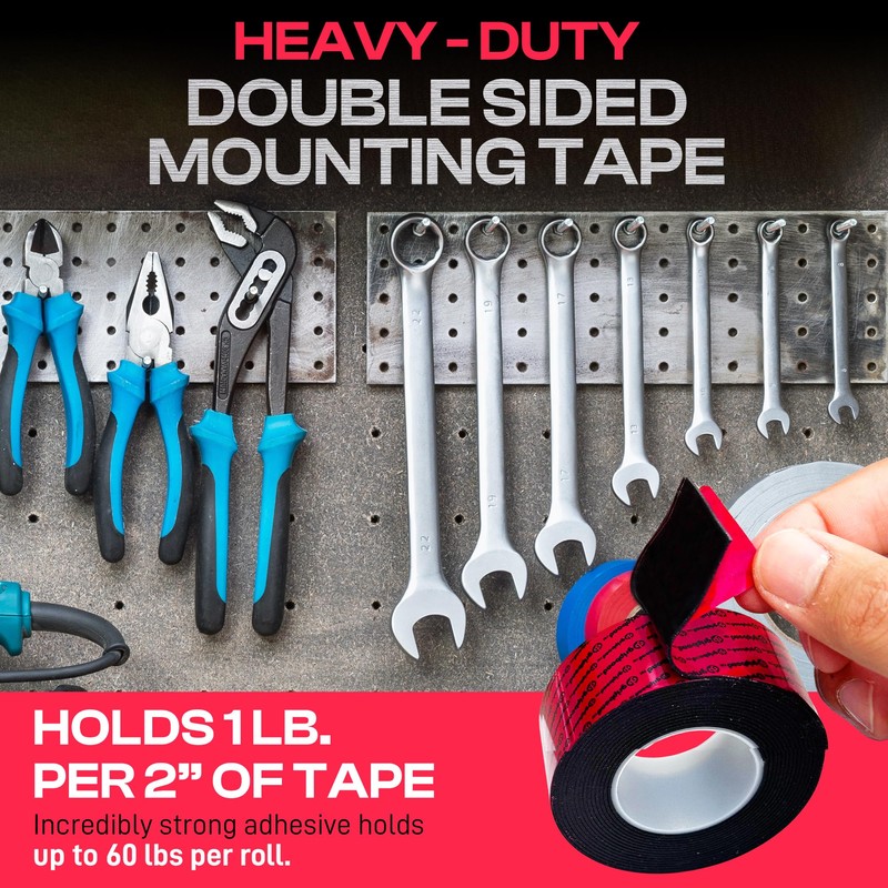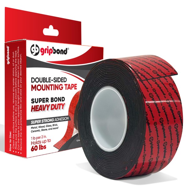 - HEAVY-DUTY ADHESION FOR TOUGH PROJECTS: GripBond black double sided tape holds 1 lb per 2 inches, and supports up to 60 lbs per roll. Each roll delivers exceptional performance for securely mounting shelves, large hooks, heavy decor, or power sockets. Perfect for both indoor and outdoor use.