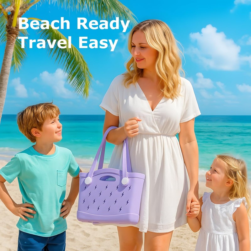GripEase EVA Material Light Purple Beach Tote Bag Lightweight Durable Waterproof Sandproof Easy to Clean Unique Lightning Hollow Design Ideal for Beach Travel and Outdoor Activities